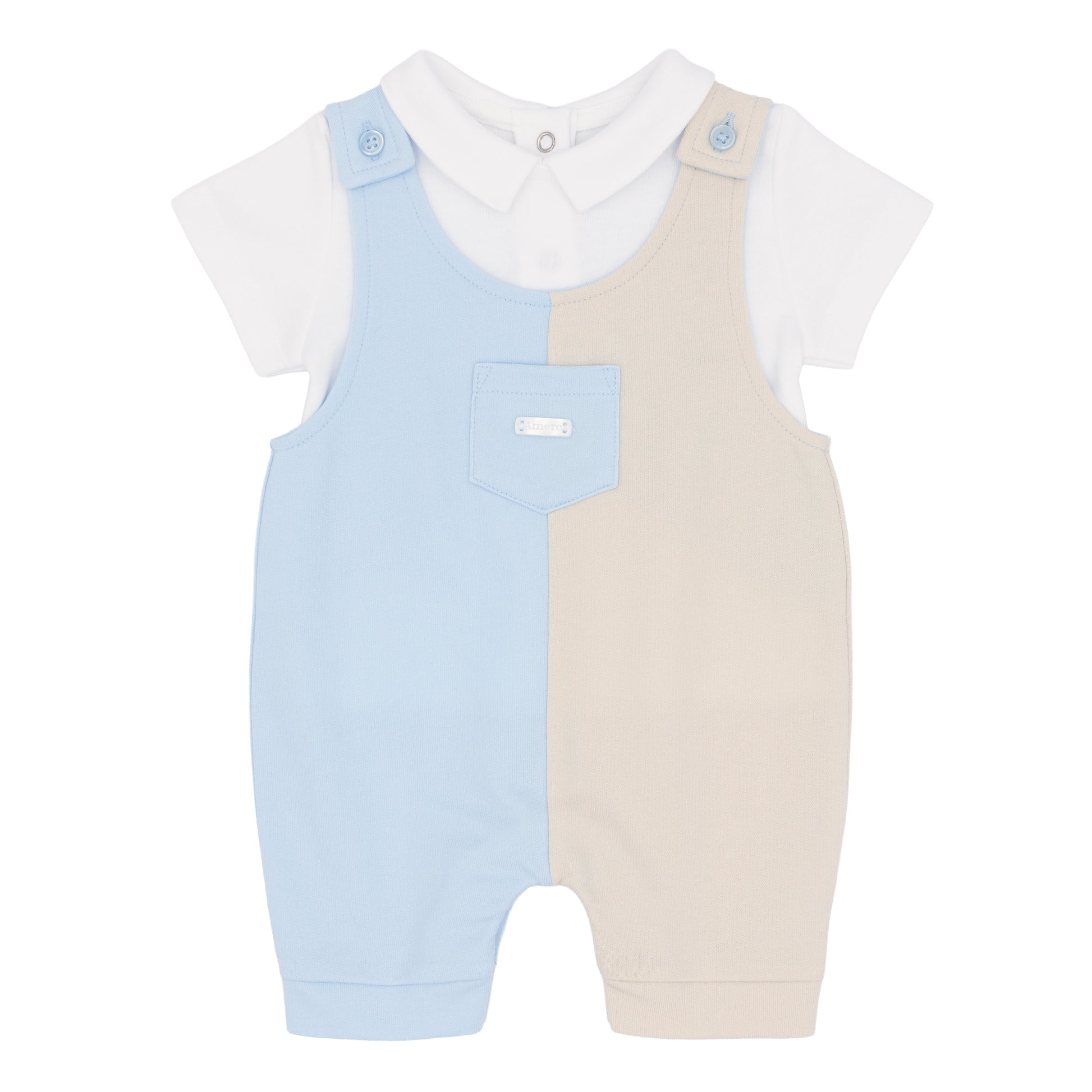 - Baby boys summer dungaree and t-shirt set in block colours.