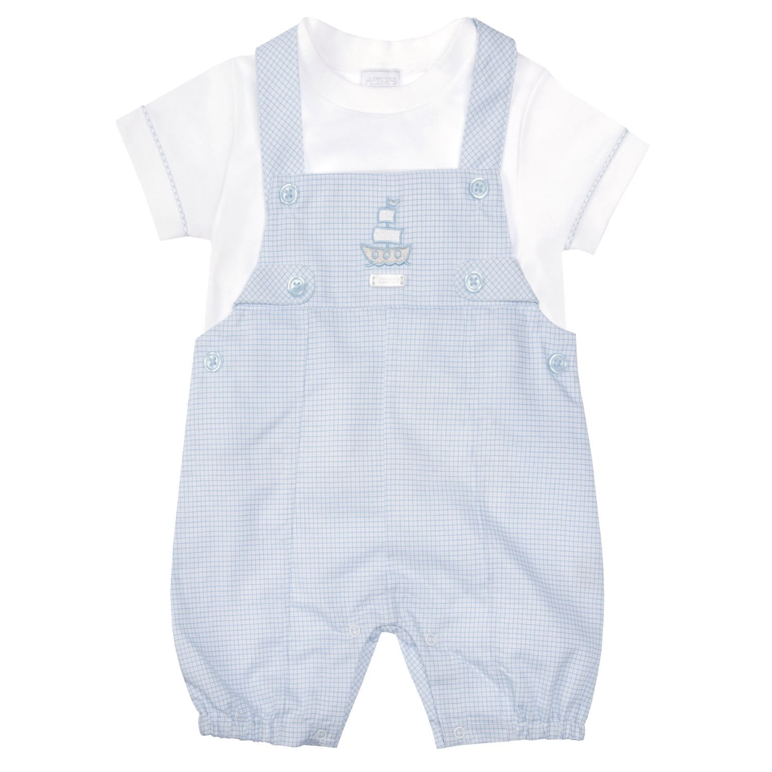 - Baby and toddler boys summer dungaree set in pale blue and white.