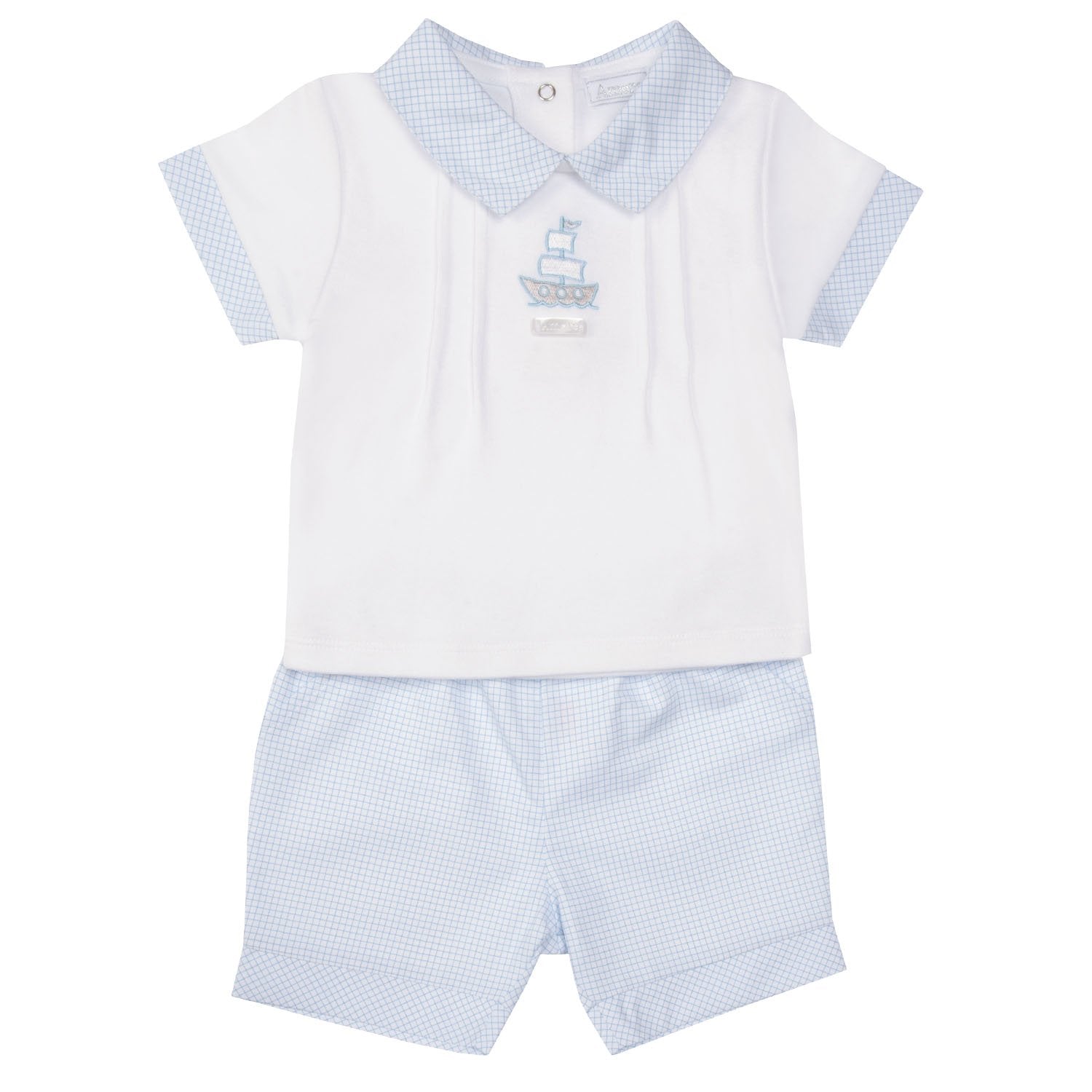 - Baby and toddler boys summer t-shirt and short set in pale blue and white.
