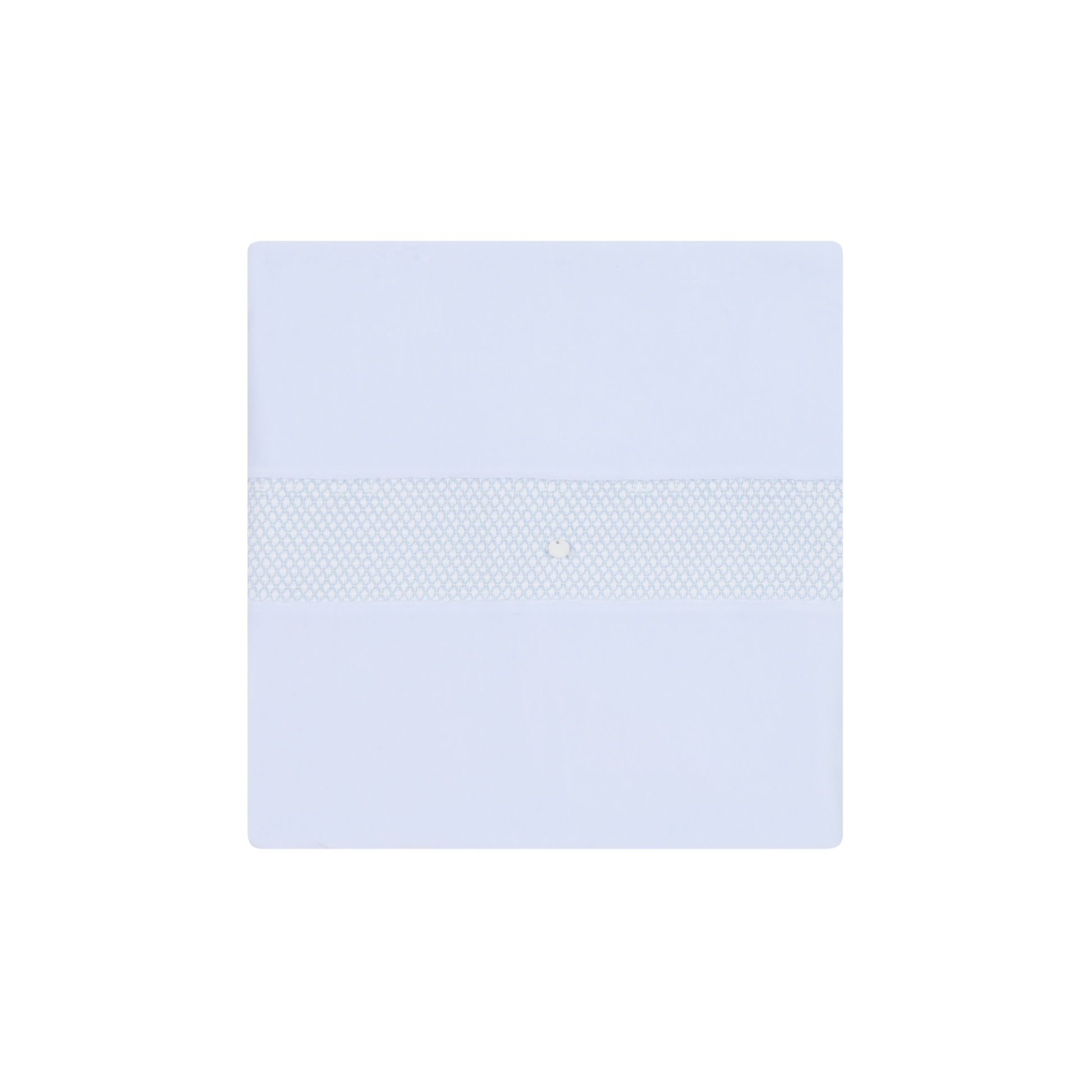 - Central band of smocking decorated with pale blue and white embroidery. Trimmed in white.