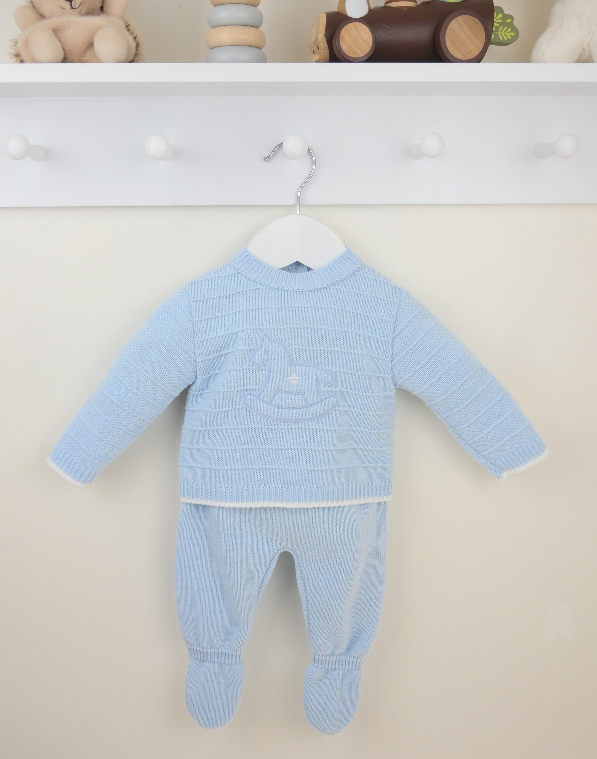 - Baby boys winter knitted jumper and footed trousers in pale blue.