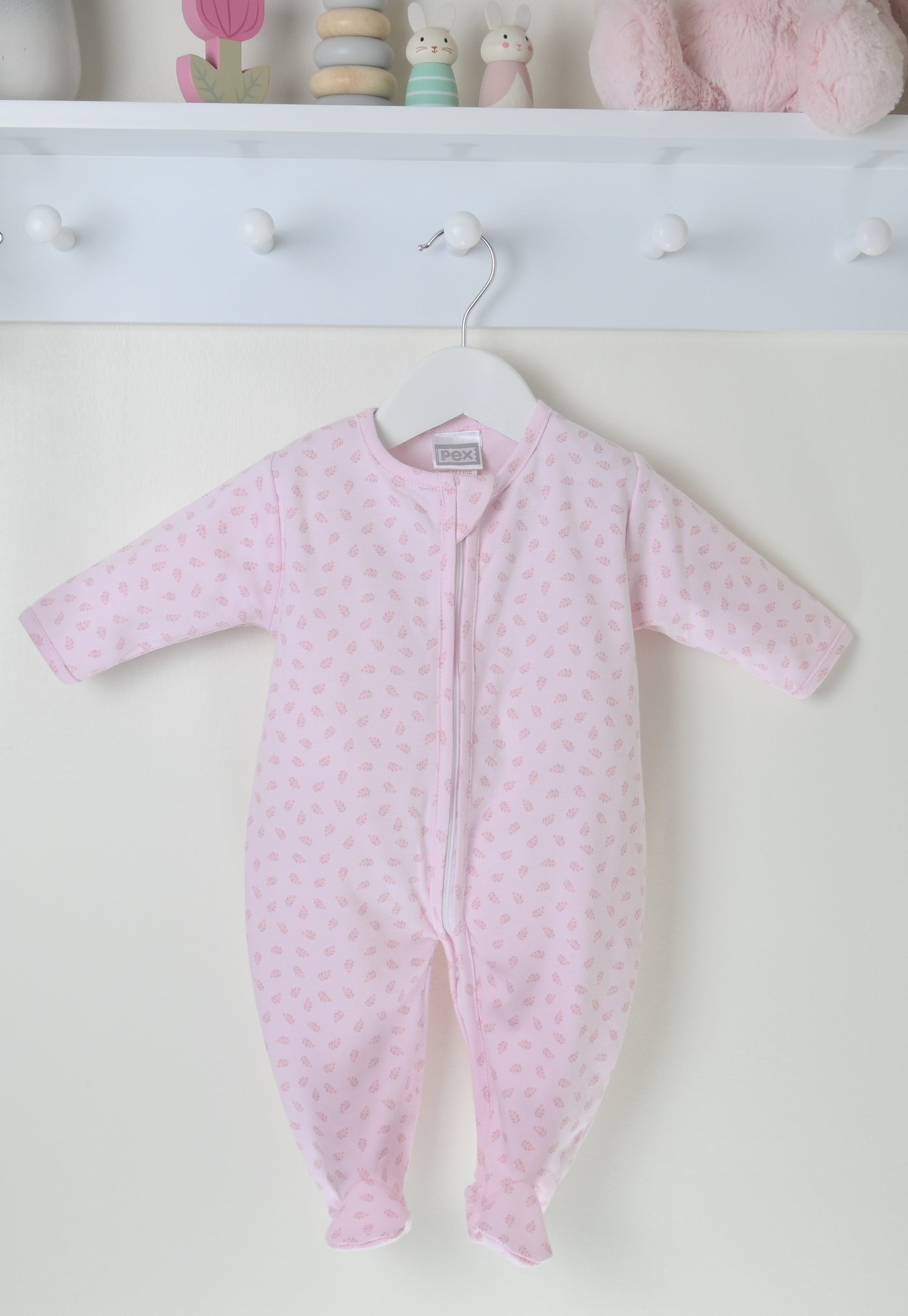 - Baby girls pink cotton sleepsuit.