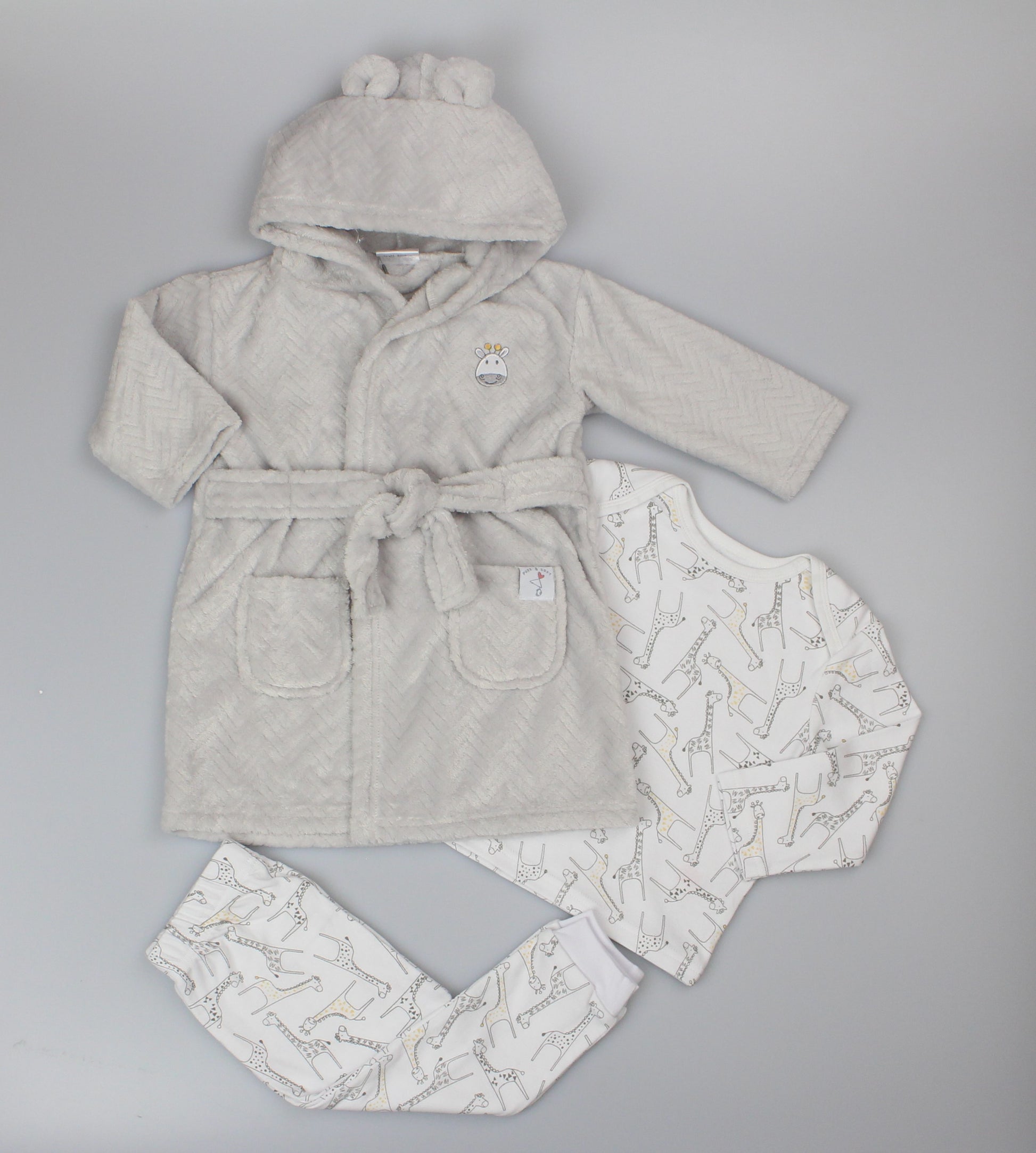 Pure & Soft Three Piece Gown Set Grey Giraffe GLS/H33580