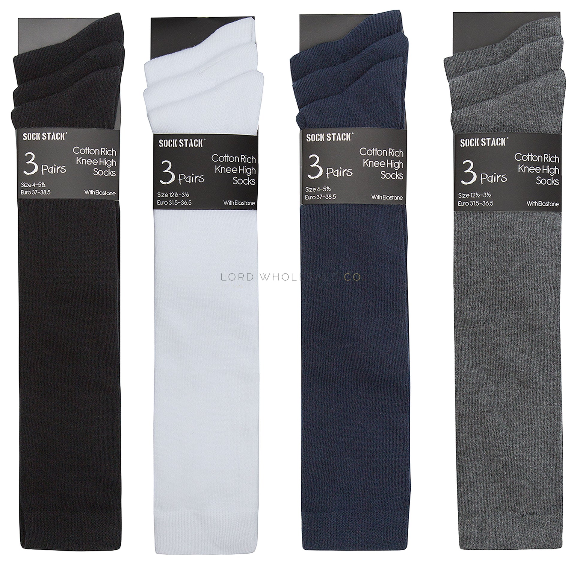 - Pack of three knee high pairs of school socks.